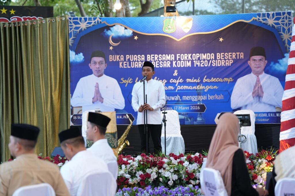 Media kara news.- Keluarga besar Komando Distrik Militer (Kodim) 1420 Sidrap menggelar buka puasa bersama unsur Forum Koordinasi Pimpinan Daerah (Forkopimda) Sidenreng Rappang, Selasa (17/3/2026)