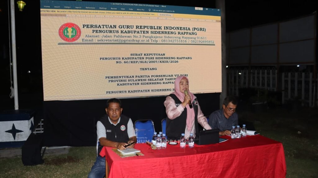 Pertemuan strategis ini berlangsung di Sekretariat Porsenijar PGRI, Rumah Jabatan Wakil Bupati Sidrap, Pangkajene, Selasa malam (14/4/2026).