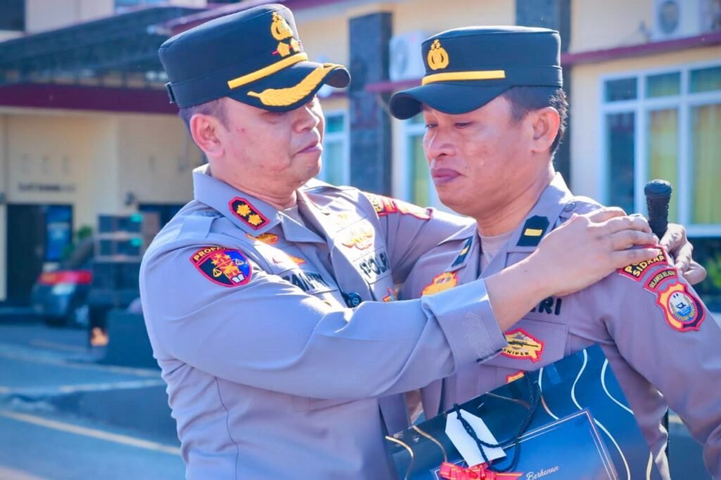 Suasana emosional terpancar saat personel yang pindah tugas berpamitan dengan seluruh rekan sejawat yang hadir, air mata dari kedua personel pun tak terbendung sembari mengucapkan terima kasih kepada Kapolres Sidrap dan seluruh personel atas segala perhatian dan bimbingan selama bertugas di Polres Sidrap