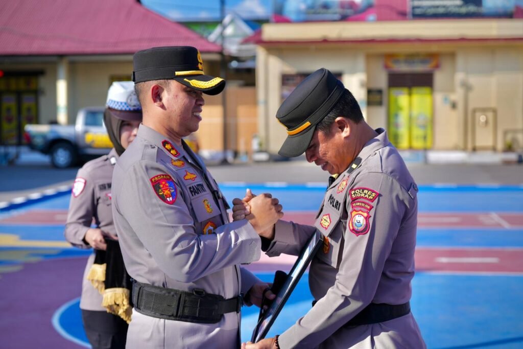 Kegiatan pemberian penghargaan sekaligus pelepasan terhadap Ipda Eka Sastri dan Aipda Arwan Rahim tersebut dipimpin langsung oleh Kapolres Sidrap Akbp Fantry Taherong dan diikuti oleh seluruh personel hingga ASN Polres Sidrap .