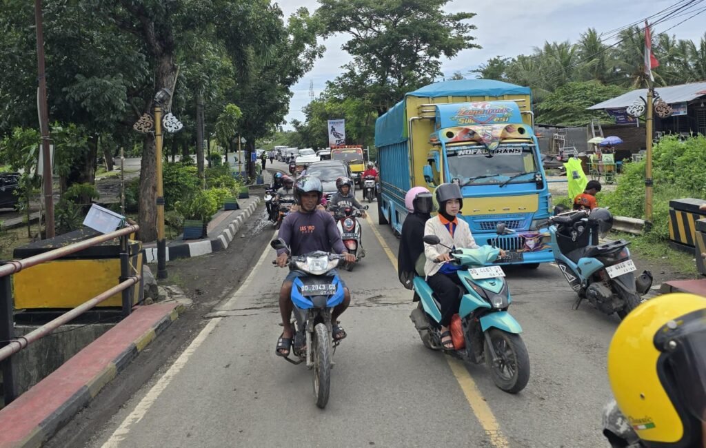 , media kara news – Jeneponto Kemacetan panjang kembali terjadi di Jembatan Belokallong pada pagi hari, mengganggu kelancaran arus lalu lintas di jalur jalan nasional yang menghubungkan kawasan selatan Sulawesi Selatan dan menjadi salah satu urat nadi perekonomian antarwilayah.Kemacetan mulai terjadi sejak pukul 06.30 WITA, dipicu oleh satu unit truk bermuatan yang mengalami kerusakan ban di badan jalan sebelum jembatan, ditambah tingginya volume kendaraan antarprovinsi yang melintas. Situasi semakin memburuk pada pukul 07.30 hingga 08.30 WITA, bertepatan dengan jam sibuk masyarakat berangkat kerja dan sekolah.Salah