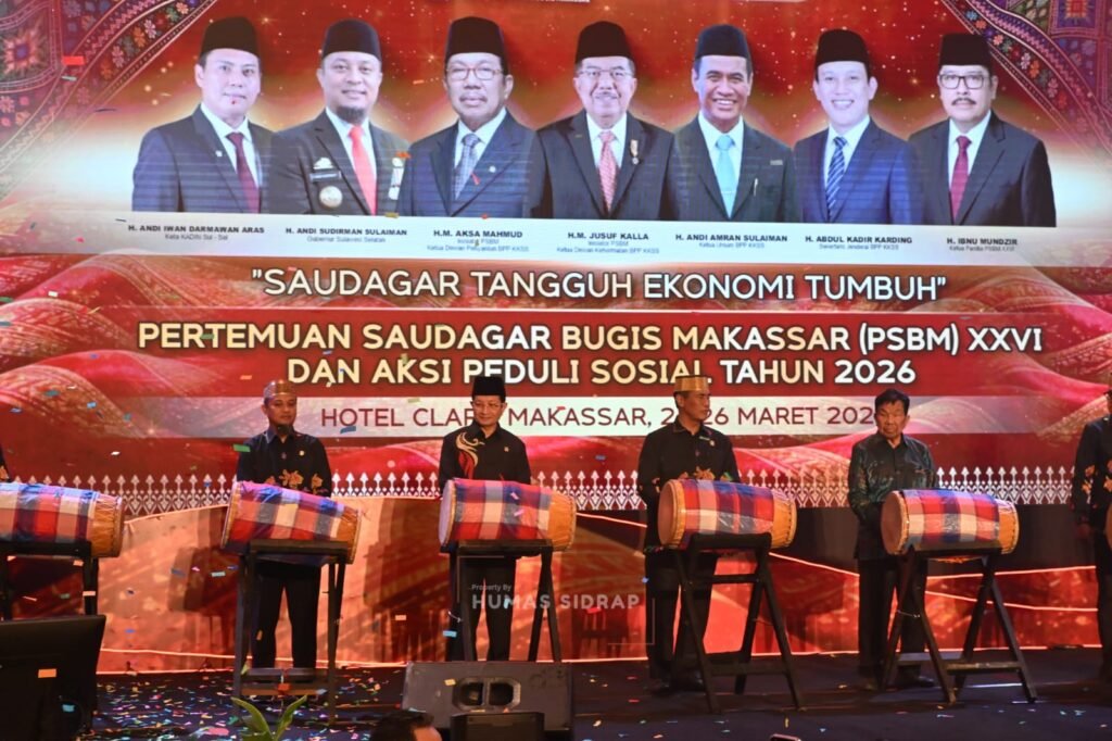 Pertemuan Saudagar Bugis Makassar (PSBM) XXVI Tahun 2026 resmi dibuka oleh Menteri Pertanian Republik Indonesia sekaligus Ketua Umum BPP KKSS, Andi Amran Sulaiman, didampingi oleh Gubernur Sulawesi Selatan, Andi Sudirman Sulaiman dan Wagub Fatmawati Rusdi.