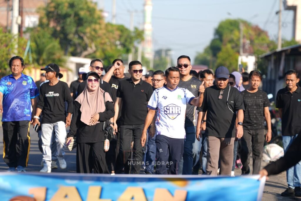 Sejak pagi hari, para peserta tampak antusias mengikuti rangkaian acara yang kemudian dilanjutkan dengan pelepasan peserta jalan sehat secara resmi oleh Bupati Sidrap.