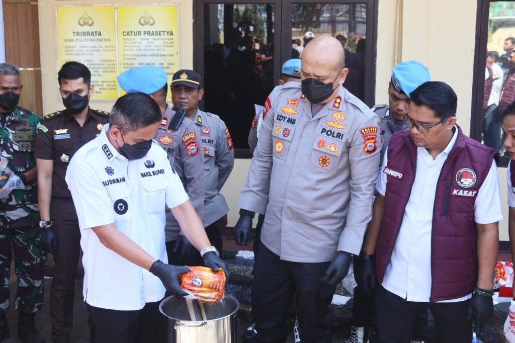 Acara ditutup dengan penandatanganan Berita Acara Pemusnahan oleh seluruh unsur pimpinan Forkopimda yang hadir, menandai kepastian hukum atas pemusnahan barang bukti tersebut.(Tmr-)